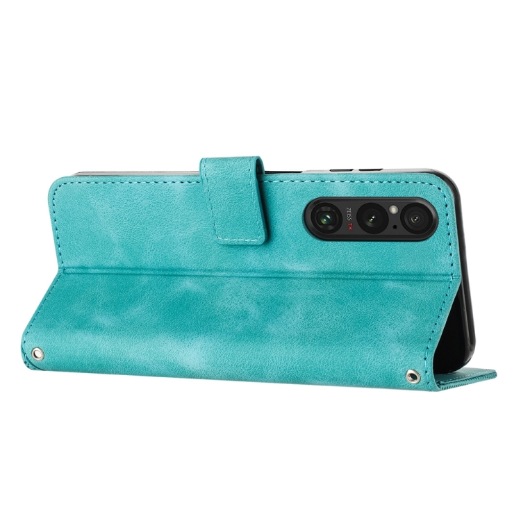 Funda de Cuero para Sony Xperia 1 V (2023) con Cordón (Verde)