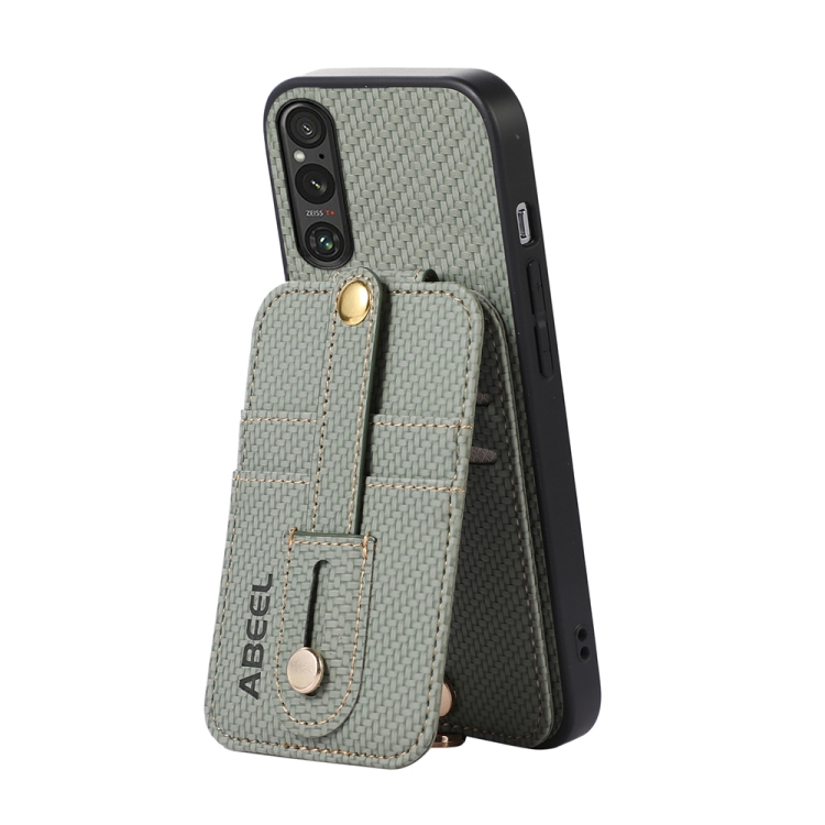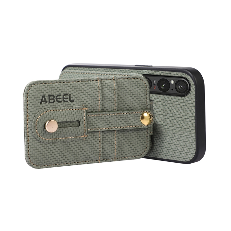 Funda para Sony Xperia 1 V Abeel con Tarjetero RFID y Fibra de Carbono (Verde)