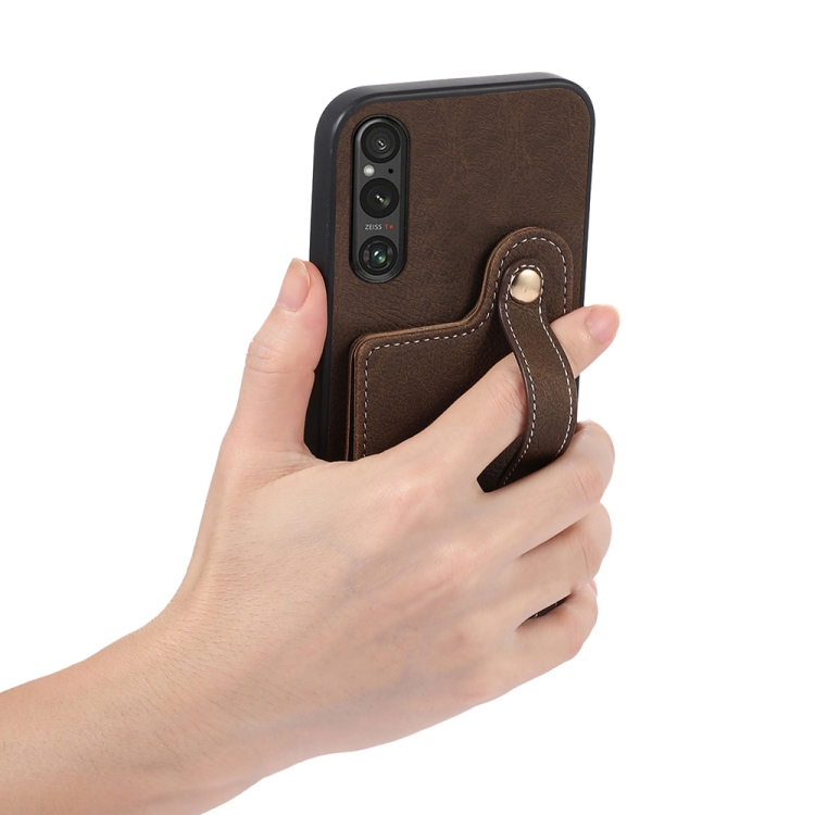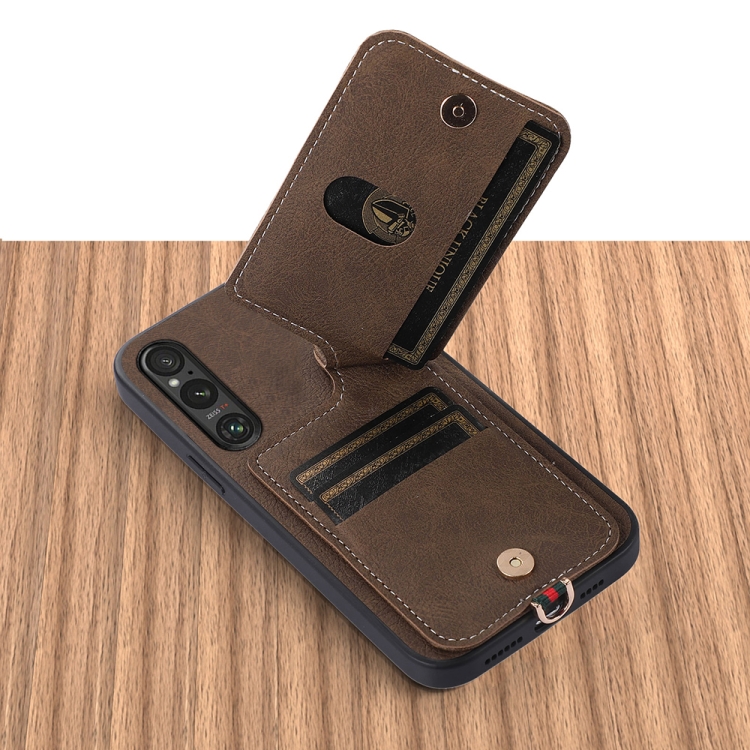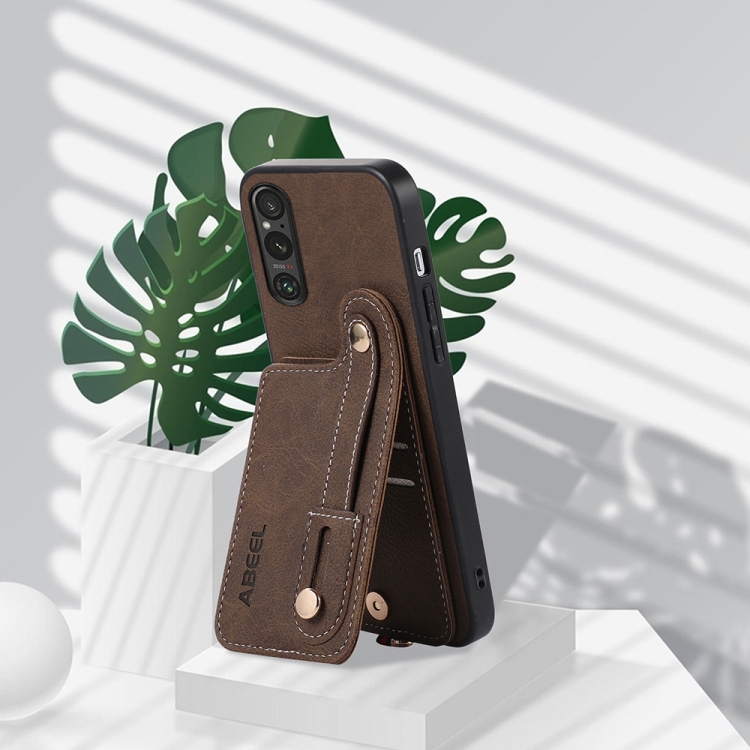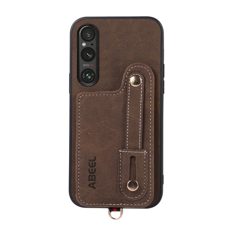 Funda para Sony Xperia 1 V Abeel con Textura Litchi y Porta Tarjetas en PU (Caqui)