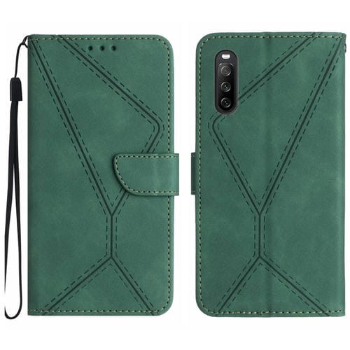 Estuche para Sony Xperia 10 V de Cuero con Costuras en Relieve (Verde)