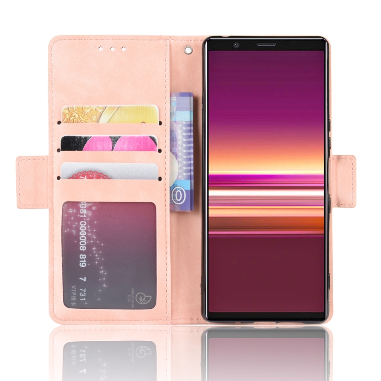 - 1x Estuche de Cuero para Sony Xperia 5 con Diseño de Pantorrilla y Ranura para Tarjeta (Rosa)