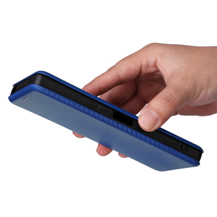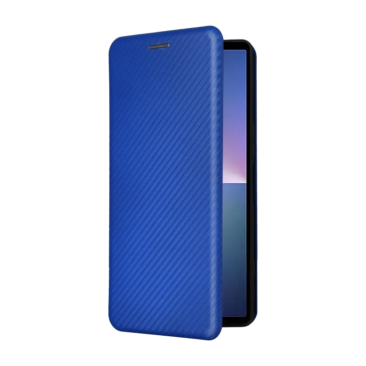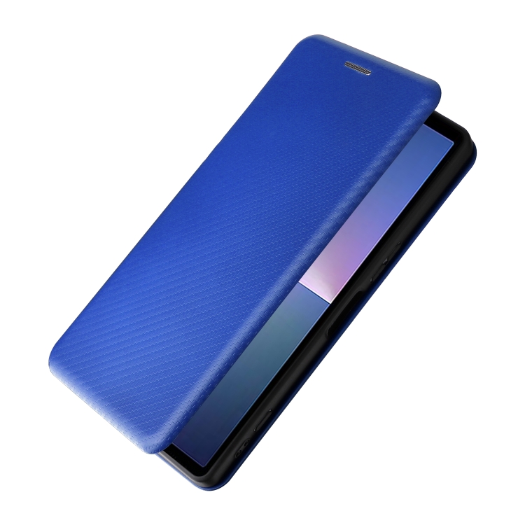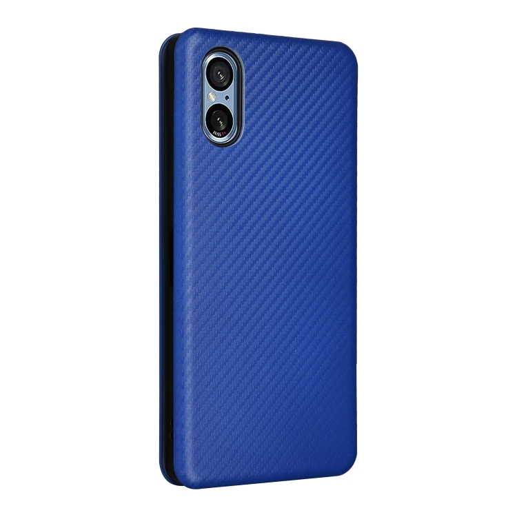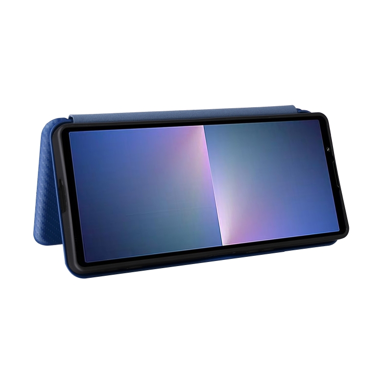 Funda de Cuero con Tapa para Sony Xperia 5 V (2023) Textura Fibra de Carbono (Azul)