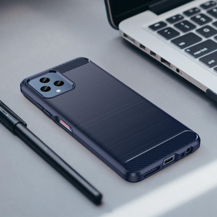 Funda TPU para T-Mobile Revvl 6X 5G con Textura Cepillada de Fibra de Carbono (Azul)
