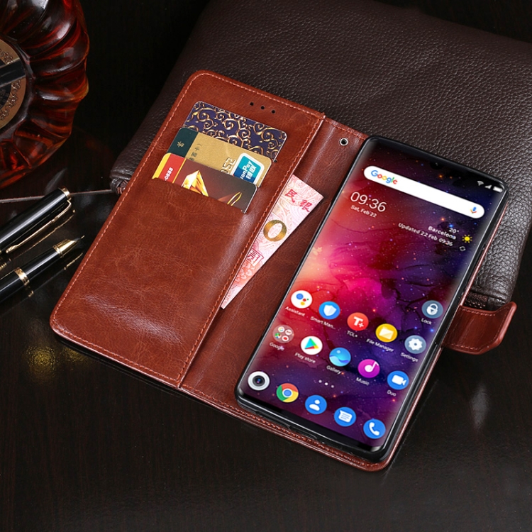Funda de Cuero Idewei Crazy Horse para TCL 10 Pro con Tapa Horizontal, Soporte, Ranuras para Tarjetas y Billetera (Negro)