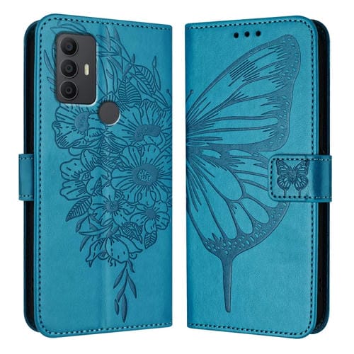 Funda de Cuero para TCL 306 con Mariposa en Relieve (Azul)