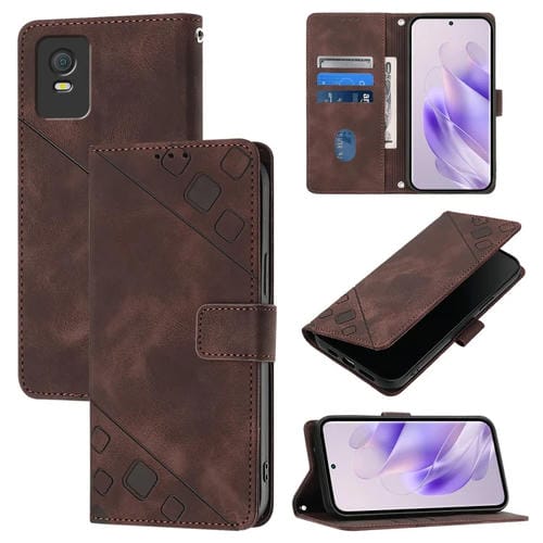 Funda de Cuero para TCL 403 Skin Feel en Relieve (Marrón)