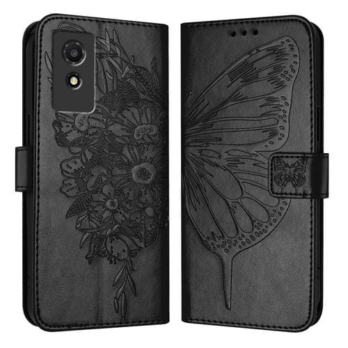 Funda de Cuero para TCL 501 con Mariposa en Relieve (Negro)