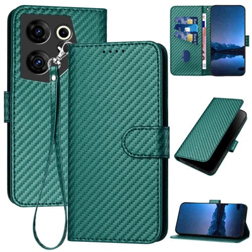 Funda para Tecno Camon 20 Premier Yx0070 de Cuero con Hebilla de Fibra de Carbono y Cordón (Verde Oscuro)
