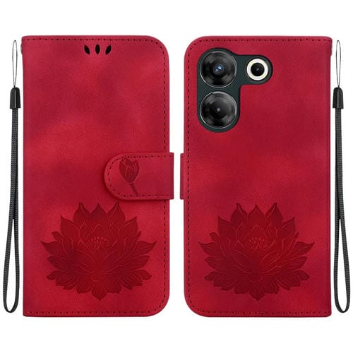 Funda de Cuero para Tecno Camon 20 Pro 5G Lotus en Relieve (Rojo)