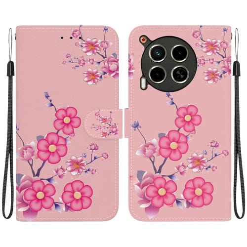 Funda de Cuero para Tecno Camon 30 4G / 30 5G Cl6 Cl7 con Dibujo de Flores de Cerezo