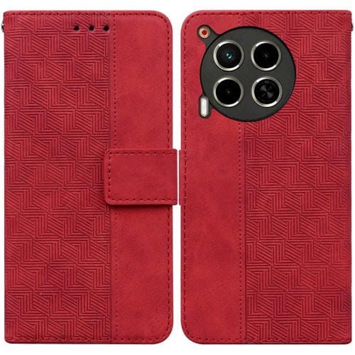 Funda para Tecno Camon 30 4G 30 5G Cl6 Cl7 Cuero Relieve Geométrico (Rojo)