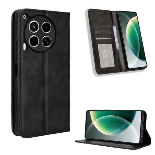 Funda para Tecno Camon 30 5G / 4G de Cuero con Textura Retro y Hebilla Magnética (Negro)