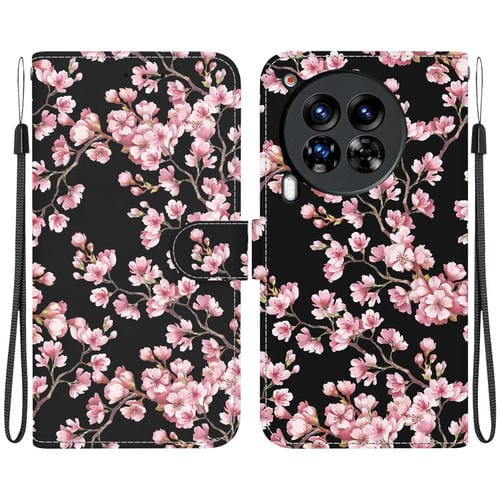 Funda de Cuero para Tecno Camon 30 Premier 5G con Dibujo Colorido y Textura de Cristal (Flor de Ciruelo)