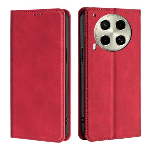 Funda Magnética de Cuero para Tecno Camon 30 Skin Feel (Rojo)
