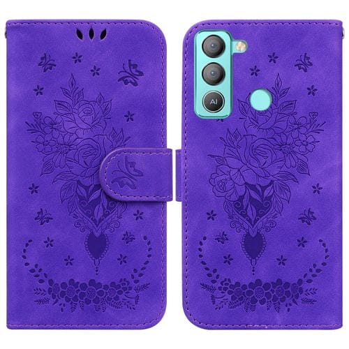 Funda para Tecno Pop 5 Lite Bd4 Butterfly Rose Rossed Leather Case (Púrpura)