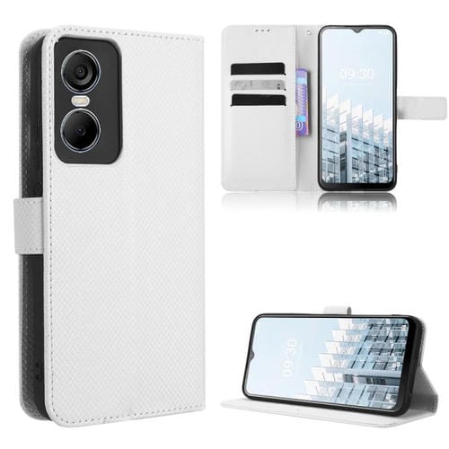 Funda de Cuero para Tecno Pop 6 Pro Be8 con Textura de Diamante (Blanco)