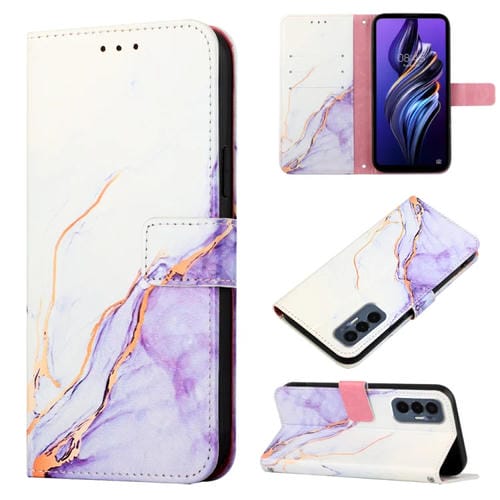 Funda de Cuero con Tapa para Tecno Pova 3 Le7 Pt003 Patrón de Mármol (Blanco Púrpura)