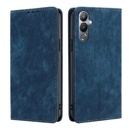 Funda de Cuero Magnética para Tecno Pova 4 con Protección RFID y Cepillo Antirrobo (Azul)