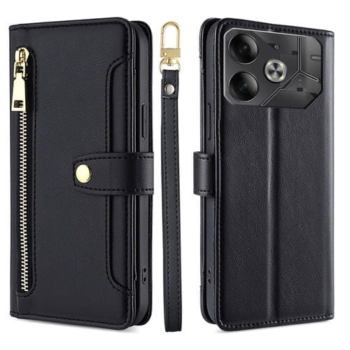 Funda de Cuero para Tecno Pova 6 5G con Billetera y Cremallera (Negro)