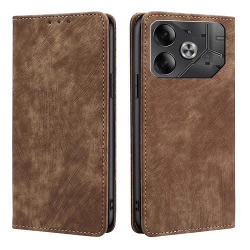 Funda de Cuero Magnética para Tecno Pova 6 5G con Rfid y Cepillo Antirrobo (Marrón)