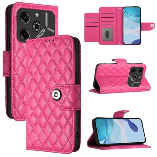 Funda para Tecno Pova 6 Pro y Pova 6 5G con Tapa de Cuero, Textura Rómbica y Cordón (Rojo Rosa)