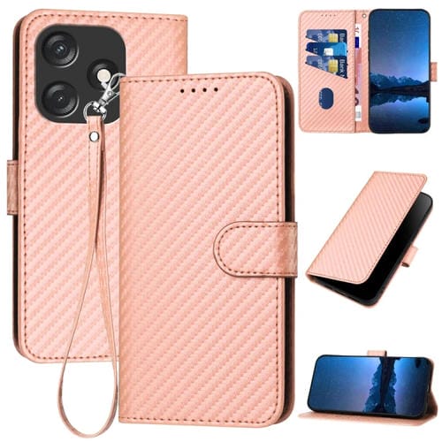 Funda de Cuero para Tecno Spark 10C Yx0070 con Hebilla de Fibra de Carbono y Cordón (Rosa)
