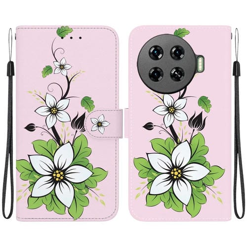 Funda de Cuero para Tecno Spark 20 Pro+ 4G con Dibujo Coloreado y Textura de Cristal (Lirio)