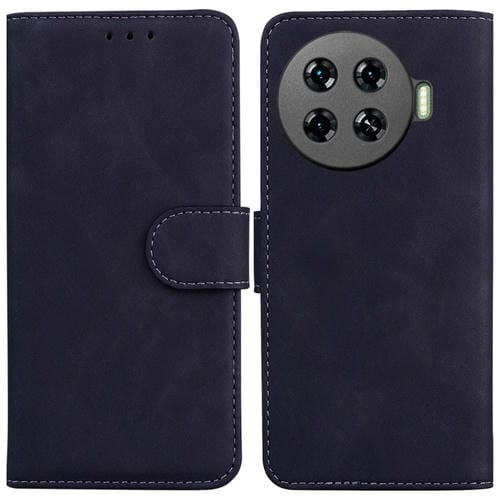 Funda de Cuero con Tapa para Tecno Spark 20 Pro 4G Skin Feel Pure Color (Negro)