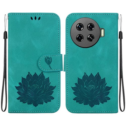 Funda de Cuero para Tecno Spark 20 Pro+ con Relieve de Loto (Verde)