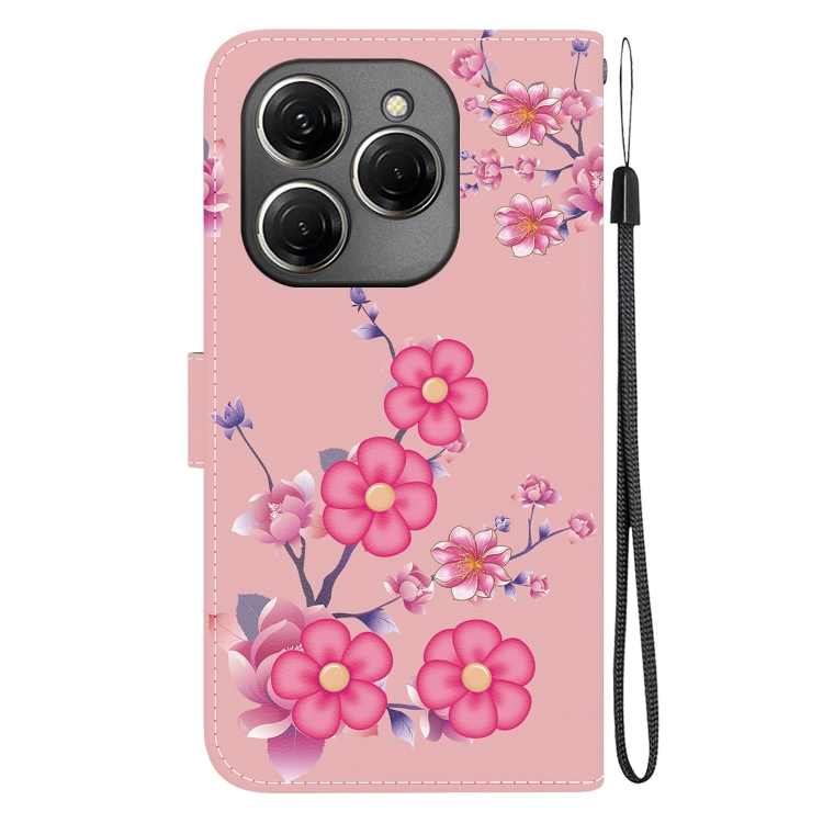 Funda de Cuero para Tecno Spark 20 Pro con Dibujo Coloreado y Textura de Cristal (Flores de Cerezo)