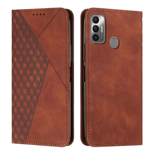 Funda para Tecno Spark 7 Diamond Splicing Siente Caja de Cuero Magnético (Marrón)