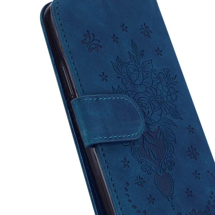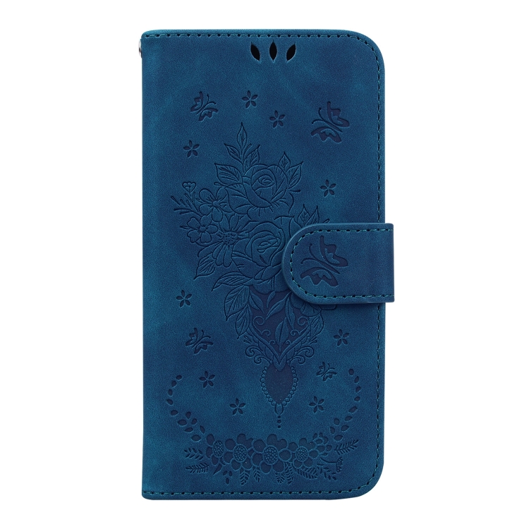 Funda para Tecno Spark 8 Pro Butterfly Rose Foothip en Relieve de Cuero (Azul)