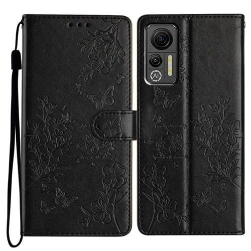 Funda para Ulefone Note 14 Cuero con Relieve Flor de Amor y Mariposa (Negro)