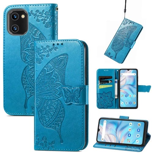 Estuche para Umidigi A13S Butterfly Love Flower de Cuero En Relieve (Azul)
