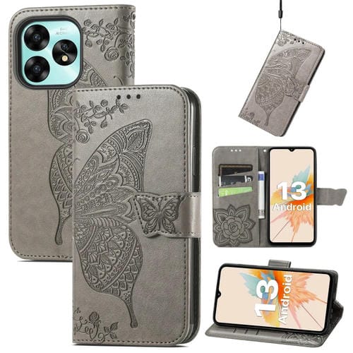 Funda para Umidigi A15 / A15C de Cuero con Relieve Flor y Mariposa (Gris)