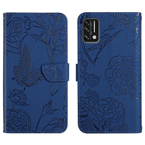 Funda Telefónica Cuero En Relieve Umidigi A7S Mariposa Peony (Azul)