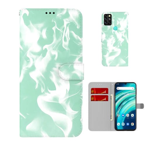 Funda de Cuero para Umidigi A9 Pro Cloud Fog Pattern con Soporte y Ranura para Tarjeta y Billetera (Menta Verde)