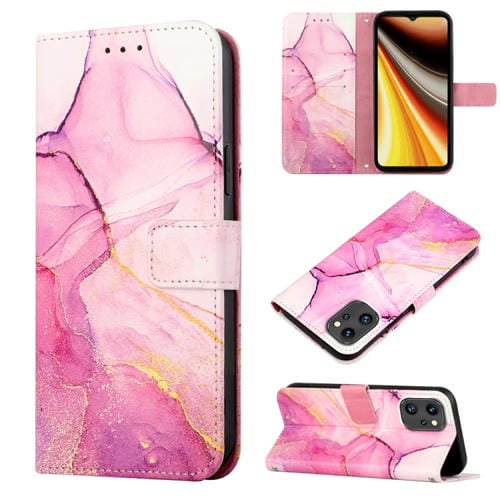 Funda con Tapa de Cuero para Umidigi Power 7 Max Pt003 con Patrón Mármol (Rosa Púrpura Dorado)