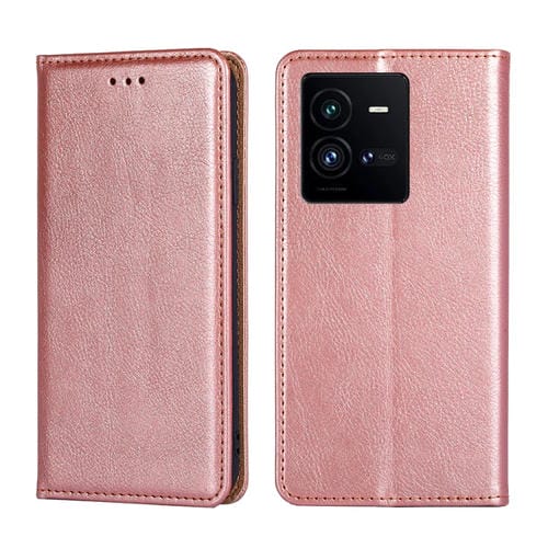 Para Vivo Iqoo 10 Pro 5G Estuche para Teléfono de Cuero Magnético de Color Sólido con Aceite Brillante (Oro Rosa)