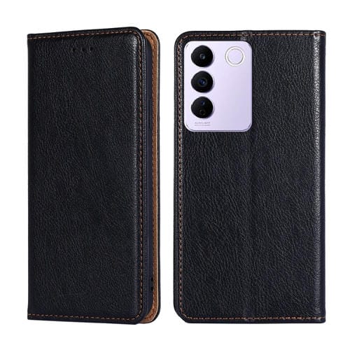 Para Vivo S16E Estuche para Teléfono de Cuero Magnético de Color Sólido con Aceite Brillante (Negro)