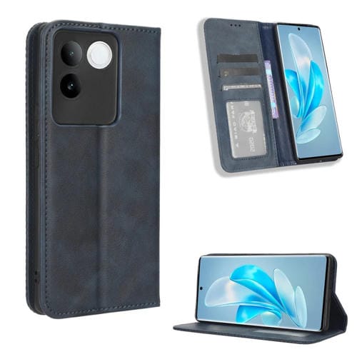 Para Vivo S17E Hebilla Magnética Textura Retro Funda de Cuero para Teléfono (Azul)