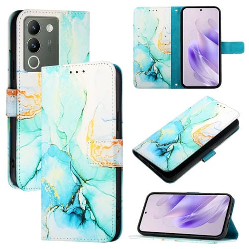 Para Vivo V30 Lite 5G Global Pt003 Funda para Teléfono de Cuero con Tapa con Patrón de Mármol (Verde)