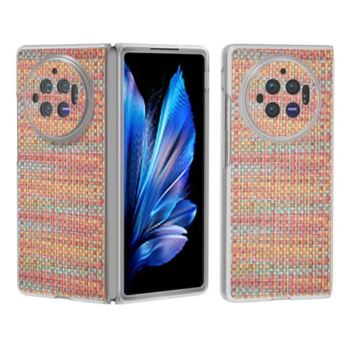 Para Vivo X Fold3 Funda para Teléfono de Pu con Marco Translúcido Esmerilado con Textura Rómbica Colorida (Naranja Rojo)