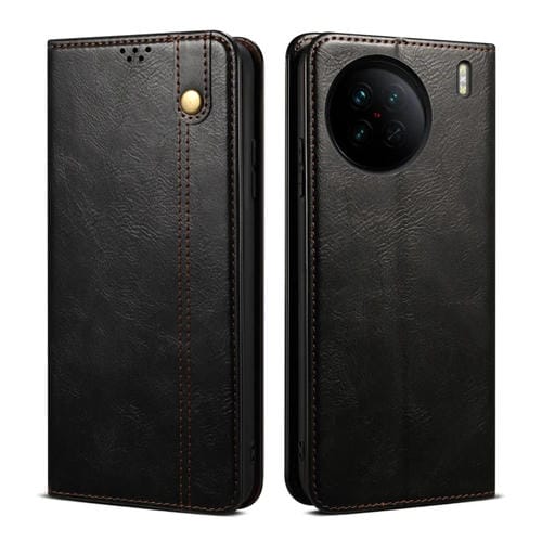 Para Vivo X90 Oil Wax Crazy Horse Texture Funda de Cuero para Teléfono (Negro)
