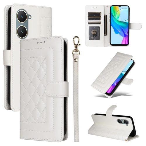 Para Vivo Y03 Diamond Lattice Funda de Cuero para Teléfono con Tapa (Blanco)