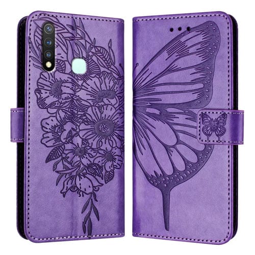 Para Vivo Y19/Y5S/U3/U20/Z5I Funda para Teléfono de Cuero con Mariposa En Relieve (Púrpura Claro)