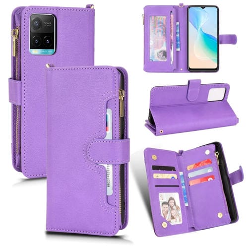 Para Vivo Y21 2021 / Y21S / Y33 Litchi Texture Funda de Cuero con Cremallera para Teléfono (Púrpura)