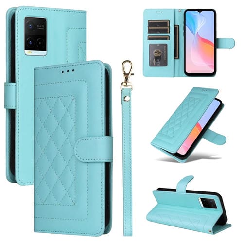 Para Vivo Y21 / Y33S Funda para Teléfono con Tapa de Cuero con Entramado de Diamantes (Verde Menta)