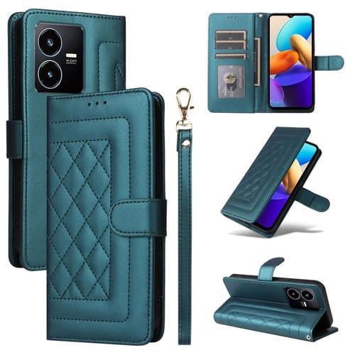 Para Vivo Y22S / Y35 Funda para Teléfono con Tapa de Cuero Diamond Lattice (Verde)