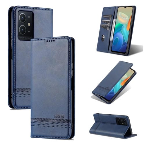Para Vivo Y33S 5G / Y75 5G Azns Magnético Texture Texture Flip de Cuero de Cuero (Azul Oscuro)